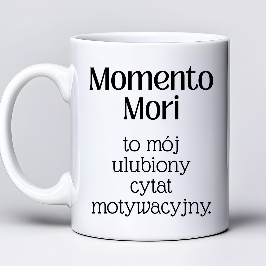 Kubek 330 ml z tekstem „Momento Mori to mój ulubiony cytat motywacyjny.”