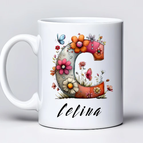Kubek z imieniem Celina i dekoracyjną literą C w kwiatowym stylu zachwyca delikatnością i kolorem. Subtelna grafika z kwiatami i motylami nadaje mu wyjątkowego charakteru. To idealny pomysł na prezent dla kobiety na każdą okazję. Świetnie sprawdzi się zarówno na co dzień, jak i jako upominek. Możliwość personalizacji pozwala dodać dowolne imię na literę C – wystarczy wpisać je w uwagach do zamówienia.