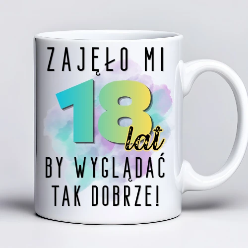 Kubek z nadrukiem 330ml z napisem „Zajęło mi 18 lat, by wyglądać tak dobrze”