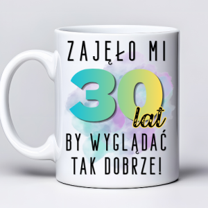 Kubek z nadrukiem 330ml z napisem „Zajęło mi 30 lat, by wyglądać tak dobrze”