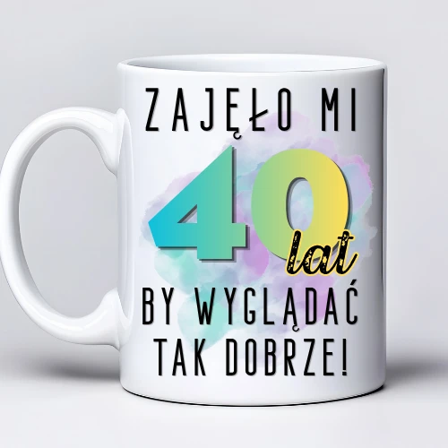 Szukasz idealnego prezentu na 40 urodziny? Ten kubek to połączenie humoru i stylu, które od razu wywoła uśmiech. Kolorowa grafika i wyrazisty napis przyciągają uwagę i podkreślają wyjątkowość okazji. To świetny wybór dla osoby z dystansem i poczuciem humoru. Idealny jako praktyczny i oryginalny prezent.