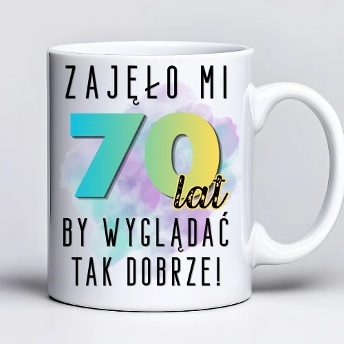 Kubek z nadrukiem 330ml z napisem „Zajęło mi 70 lat, by wyglądać tak dobrze”