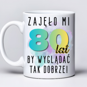 Kubek z nadrukiem 330ml z napisem „Zajęło mi 80 lat, by wyglądać tak dobrze”