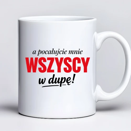 Kubek z nadrukiem 330ml z napisem „a pocałujcie mnie WSZYSCY w d*pę!”