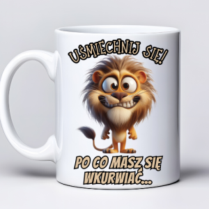 Kubek z nadrukiem 330ml z napisem Uśmiechnij się po co masz się wk***ać